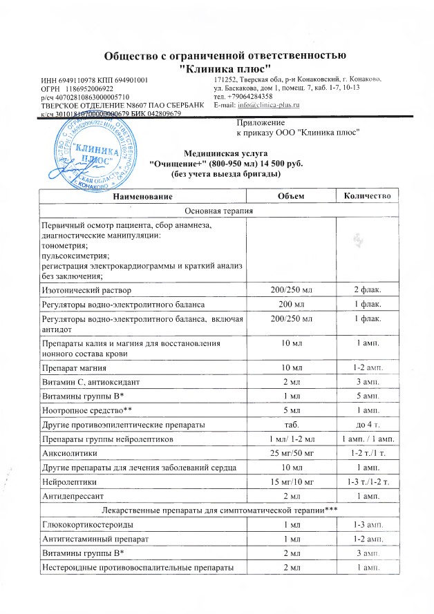 Цена не является окончательной и зависит от удаленности места жительства пациента и его состояния здоровья* Администрация клиники Плюс принимает все меры по своевременному обновлению размещенного на сайте прайс-листа, однако во избежание возможных недоразумений, советуем уточнять стоимость услуг в регистратуре или в контакт-центре по телефону 8 (800) 700-77-14. Размещенный прайс не является офертой. Медицинские услуги оказываются на основании договора.